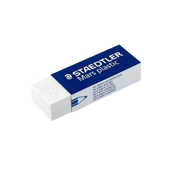 Goma Staedtler Mars Plastic de calidad Premium, suave, ligera. Goma de borrar de alta calidad. Tamaño: 62 x 23 x 13 mm. Excelente capacidad de borrado sin dejar casi restos. Sin ftalatos, ni latex. Borra lapiz y color sobre papel normal o vegetal.