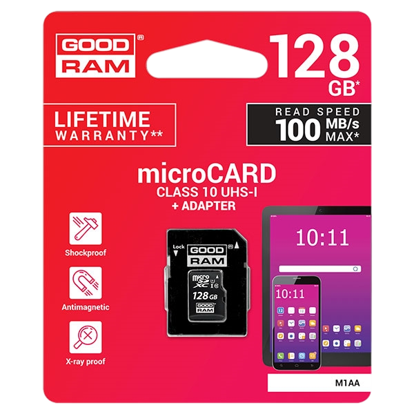 El uso de la interfaz rápida UHS-I influye sustancialmente en los parámetros del producto: 100 MB/s (lectura) y 10 MB/s (registro). Esto se traduce directamente en la calidad y fiabilidad de las operaciones realizadas, tales como: fotos en serie, slow motion, realización de vídeos de cámara rápida o transmisión en vivo en calidad HD.