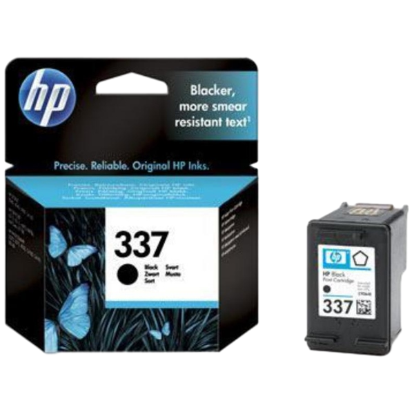 Cartucho de tinta de la marca HP Modelo: HP 337 Negro. Capacidad: 420 pagina. Compatible: Deskjet 5940, Deskjet 6940, Deskjet 6980, Deskjet D4160, Officejet H470/b/wbt Officejet 6310/6315, Officejet K7100, Photosmart 2570, Photosmart 2575, Photosmart C4180/C4190, Photosmart D5160, Photosmart 8050