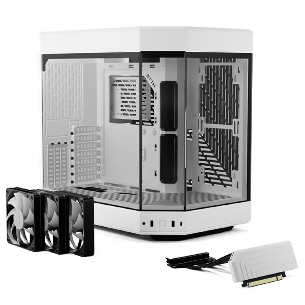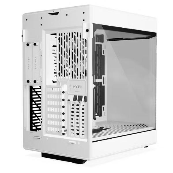 La caja Hyte Y60 ofrece vistas panorámicas sin igual gracias a su diseño de vidrio templado en tres piezas, que elimina el pilar de la esquina, permitiendo que veas el interior de tu ordenador desde cualquier ángulo, ya sea desde el lado izquierdo o derecho de tu escritorio. La caja de Hyte te permite montar tu GPU de forma vertical, destacando su diseño y rendimiento de manera única. Incluye un cable elevador PCIE 4.0 con una cubierta protectora que se integra perfectamente en la caja, permitiendo el uso de tarjetas PCIE de media altura detrás de la tarjeta gráfica montada verticalmente. Esta cubierta protectora es la primera de su tipo, diseñada específicamente para la Y60.