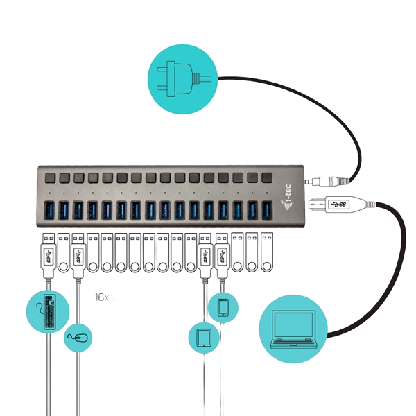I-Tec USB 3.0 16 puertos 90 W – Hub USB