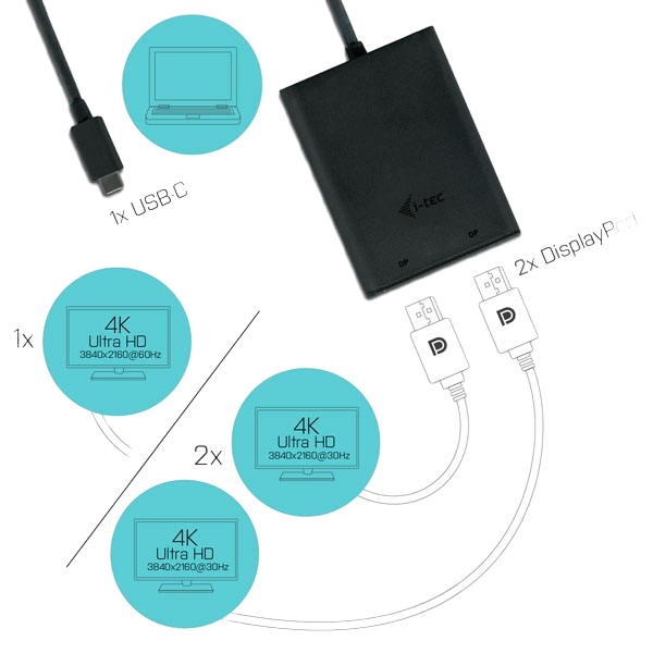I-Tec USB-C a 2 x Display Port 4K – Adaptador
