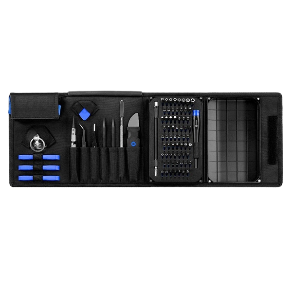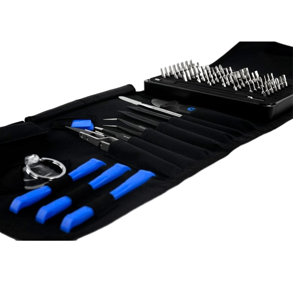 Contiene todas las herramientas de empuje, palanca, agarre, levantamiento, seguridad ESD y atornillador necesarias para cualquier servicio de electrónica de consumo.