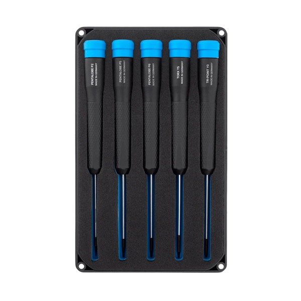 El conjunto de destornilladores coincide con el estilo del conjunto de Bits de precisión Mako. La tapa se mantiene magnéticamente en su lugar y se puede utilizar como una bandeja de clasificación o soporte mientras trabaja en su proyecto.