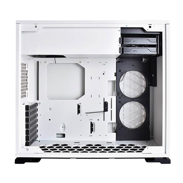 El modelo 101 cuenta con un botón de alimentación oculto, que se mezcla discretamente con el logotipo de LED único. El bisel frontal se ilumina cuando el sistema se enciende. Para dar a la parte frontal un aspecto sencillo y despejado, el módulo de E/S frontal se coloca en la parte superior, lo que permite un acceso más fácil para los equipos que se colocan debajo de escritorios o mesas.
