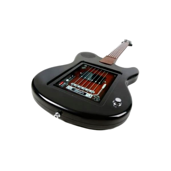 Por fin podrás emular a tus grándes ídolos como Jimmy Hendrix o Peret sin tener ni pajolera idea de música. Desenpolva tu iPad, tu iPhone, o tu iPod touch y encasquétalos en este artilugio del demonio, y de paso búscate una gabardina y unas gafas para que no te avasallen los fans por la calle. Si alguna vez has querido hacer la croqueta y tocar la guitarra como Marty McFly en regreso al futuro, pero te echa para atrás tener que comprar un armatoste que te ocupe todo el amario para ello, esta es tu solución. Tiene un altavoz incorporado para que les chafes la siesta a tus vecinos, y si eres un manco tranquilo, porque tiene un método para aprender a tocar como Carlos Santana mediante iluminación LED. ¡Pero eso no es todo! Esta maravilla de cacharro es capaz de simular una guitarra eléctrica, una acústica, o un bajo, para que en tu bloque de pisos piensen que tienes un antro rockero montado en casa y para que hagas aullar a los perros del barrio.