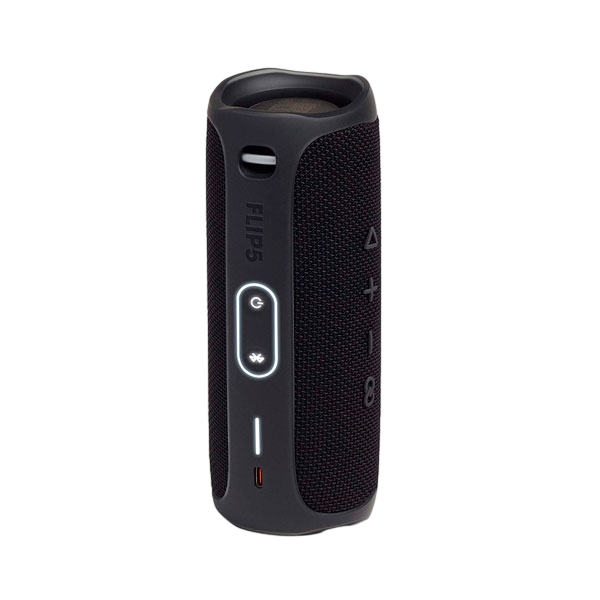 Altavoz portable JBL Flip 5 con hasta 12 horas de autonomía y resistente a inmersión en agua IPX7 y a los golpes gracias a su carcasa de goma. Función de manos libres y compatible con los asistentes de voz Siri y Google Now. Admite conexión de hasta 2 dispositivos Bluetooth simultáneos. Conexión USB-C.