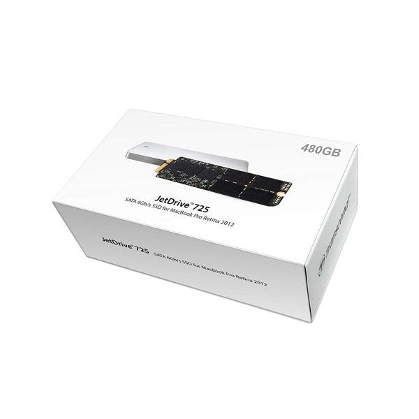 El kit de ampliación de SSD para Mac Transcend JetDrive 725 tiene todo lo necesario para que puedas ampliar el almacenamiento interno de tu Mac. Incluye destornilladores, cable USB, y una caja especial para que puedas utilizar tu viejo SSD como disco duro externo. Es compatible con los modelos MacBook Pro (Retina) 15" Mediados 2012 – Principios 2013 (Identificador Mac: MacBook Pro 10,1). Alcanza velocidades de hasta 570MB/s de lectura y 460MB/s de escritura y cuenta con 480GB de capacidad de almacenamiento