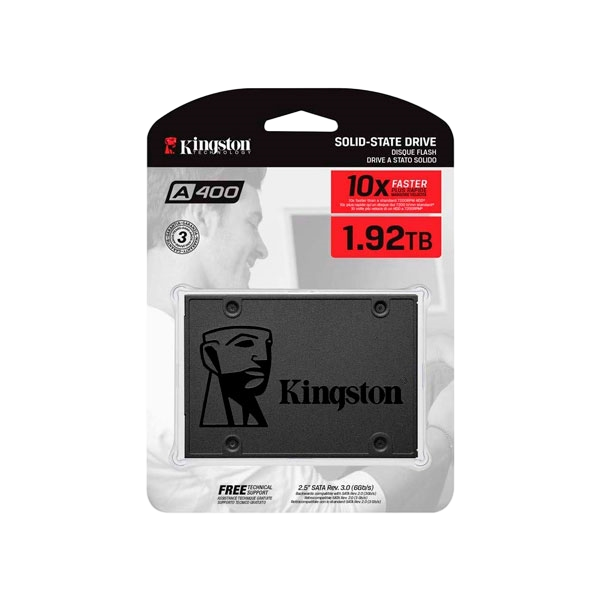 El SSD A400 con capacidad de 1.92TB es el disco duro más económico de Kingston en formato 2.5" SATA. Es perfecto si lo que quieres es mejorar el rendimiento de tu viejo PC o portátil sin gastarte mucho dinero, o bien si quieres montar un ordenador muy económico pero con prestaciones modernas. El A400 ofrece un gran rendimiento a uno de los precios más baratos del mercado. Esta velocidad es mucho mayor que la de un disco duro convencional, ¡por lo que enseguida notarás la diferencia si cambias uno por otro! Kingston te da además garantía limitada de 3 años y soporte técnico gratuito.