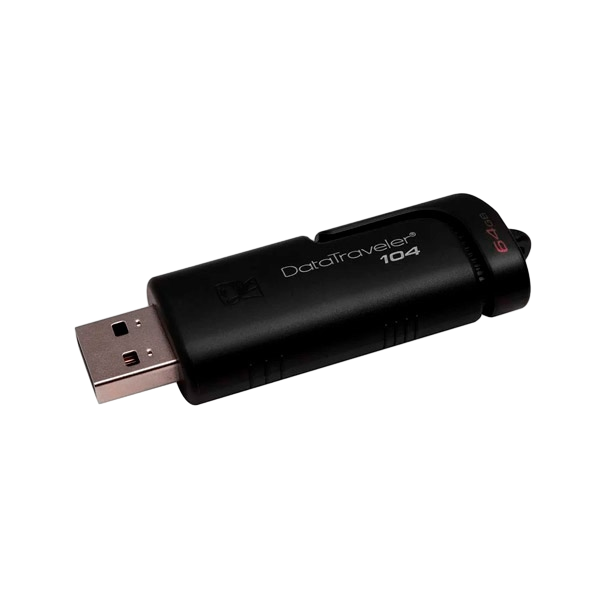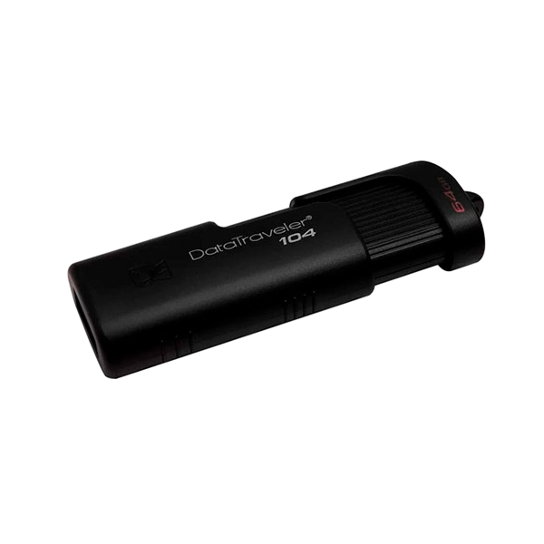 La unidad flash USB 2.0 DataTraveler® 104 (DT104) de Kingston es una solución de almacenamiento asequible para la mayoría de los consumidores. Esta unidad negra confiable y elegante es la mejor para almacenar y transferir documentos y medios cotidianos. El diseño de la tapa deslizante permite que el conector USB se pueda alojar de manera segura en el interior y evita que la tapa se pierda. Disponible en capacidades de 16GB hasta 64GB para satisfacer sus necesidades de almacenamiento.