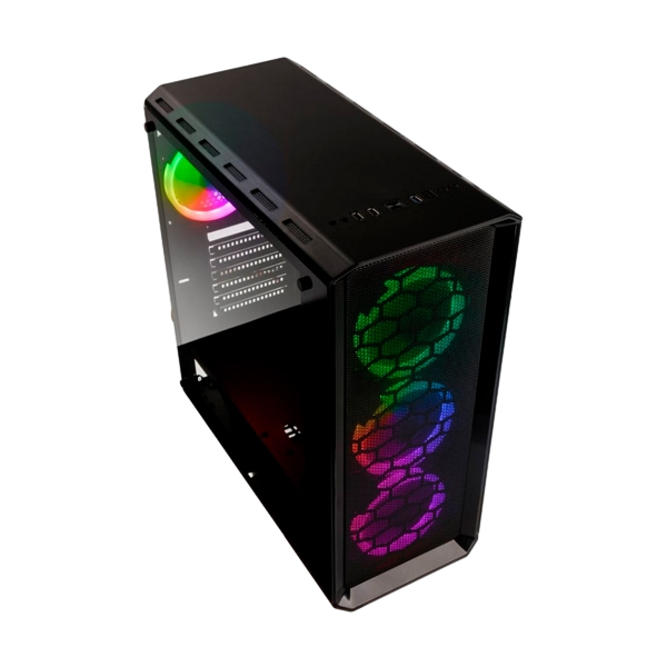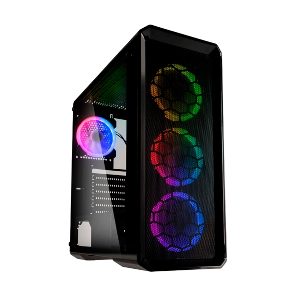 La Kolink Levante es una caja midi-tower con un diseño llamativo que ha sido optimizado para el flujo de aire. Como resultado, es una excelente opción para principiantes y expertos. La Kolink Levante presenta un llamativo panel frontal de malla que la cubre sutilmente, aunque aún deja visibles, tres ventiladores de RGB preinstalados. La combinación de iluminación RGB y el panel de malla crea un efecto visual impresionante. La Kolink Levante también incluye paneles de vidrio templado el aspecto se completa con otro ventilador RFB preinstalado en la parte posterior de la carcasa.