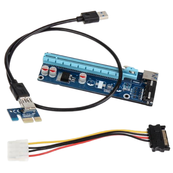 La tarjeta riser PCI Express de Kolink se puede conectar a cualquier ranura PCI Express x1 de la tarjeta madre. A continuación, la ranura x16 PCI Express se puede montar en una posición diferente en la carcasa. Esto permite que una tarjeta gráfica se opere en cada ranura PCIe de una tarjeta madre, incluso si la tarjeta gráfica es más ancha que una sola ranura. Mediante el uso de varias tarjetas elevadoras, varias tarjetas gráficas se pueden operar simultáneamente en una tarjeta madre. Adaptador PCE-E diseñado para minar criptomonedas Bitcoin, Ethereum, LiteCoin, AltCoin, DogeCoin..etc.
