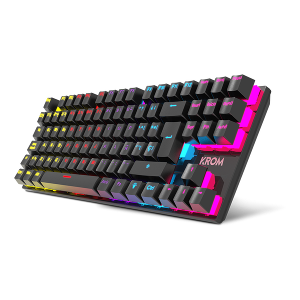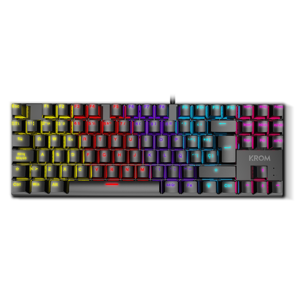 El KROM Kasic es un teclado mecánico de formato TKL (TenKeyLess), lo que significa que no incluye el teclado numérico, permitiendo un diseño más compacto y fácil de transportar. Este teclado es ideal para jugadores y usuarios que buscan un dispositivo eficiente y que ahorre espacio.