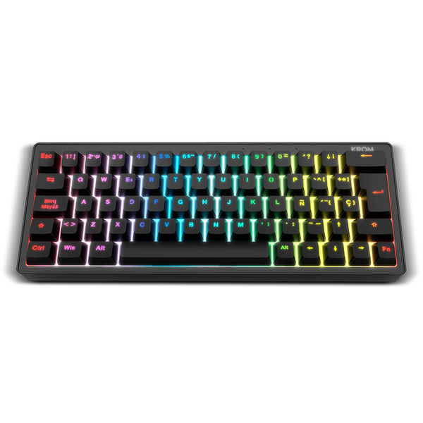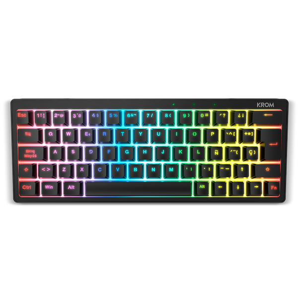 El Krom Kreator es un teclado mecánico gaming diseñado para jugadores que buscan un alto rendimiento en un formato compacto. Su diseño 60%, elimina teclas innecesarias para ofrecer un espacio de juego más libre y un escritorio más ordenado, ideal para setups minimalistas y escritorios con espacio reducido. Los switches mecánicos lubricados garantizan pulsaciones suaves, rápidas y silenciosas, mejorando la experiencia tanto en juegos de alta intensidad como en escritura prolongada. La retroiluminación RGB personalizable con 20 efectos diferentes permite crear un ambiente visual impactante y adaptado a tu estilo.