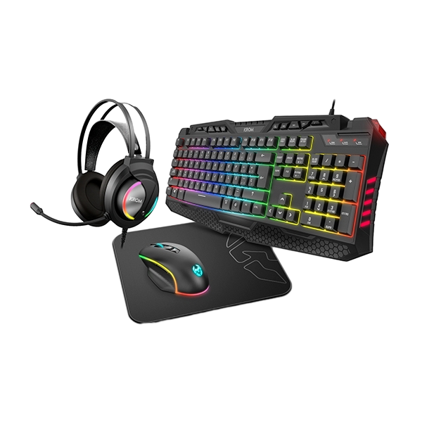 Krom Kritic combo gaming Teclado + Auriculares + Ratón + Alfombrilla – Pack Periféricos