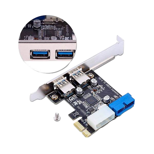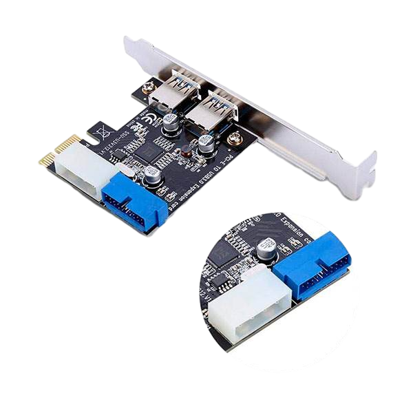 Lazmin Conector de alimentación de la Tarjeta controladora USB, PCI-E a USB 3.0 Adaptador de Tarjeta de expansión de supervelocidad con Interfaz Frontal 19PIN. USB 3.0 admite velocidades de transferencia de hasta 5 Gbps. Ranuras compatibles: PCI-E x1 / x4 / x8 / x16. Compatibilidad: funciona muy bien con Windows XP 32/64, Windows 7 32/64, Windows8, Windows8.1, Windows10.