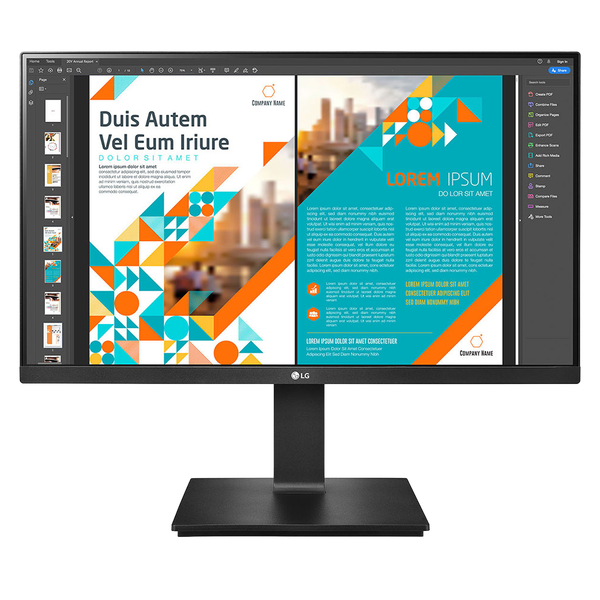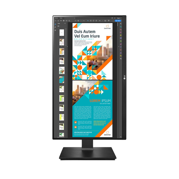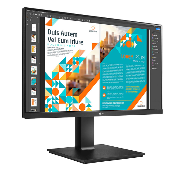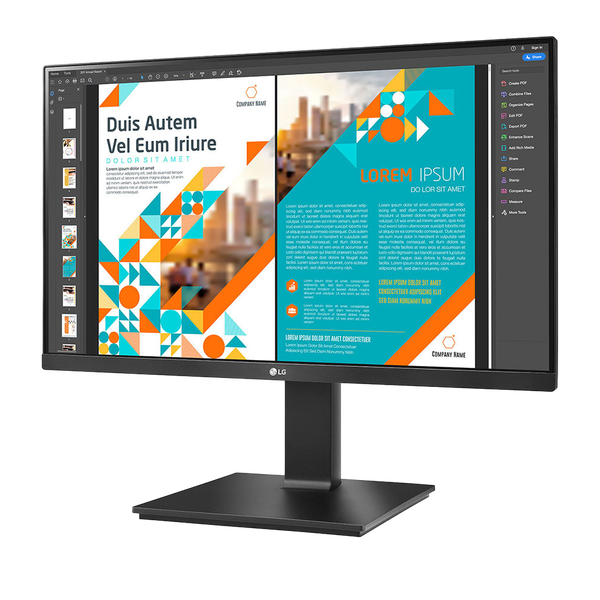 El monitor LG 24BP75CP-B presenta un diseño elegante y moderno que se adapta a cualquier espacio de trabajo. Su base ajustable permite personalizar la altura y el ángulo para una visualización óptima. Además, su construcción robusta asegura durabilidad y estabilidad.