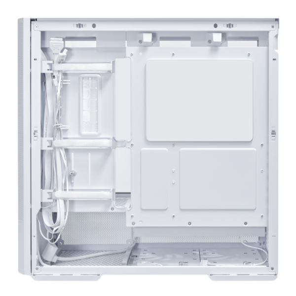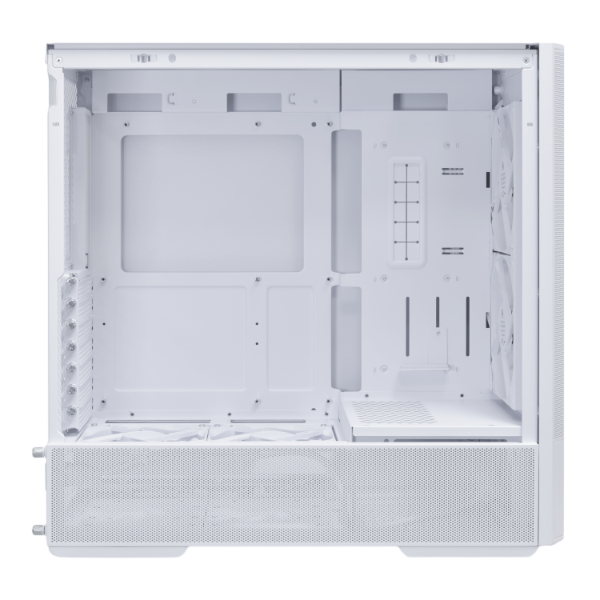 Está construida con acero SGCC resistente y duradero, con un panel de cristal templado para poder visualizar el interior de la caja, perfecta para sistemas con iluminación ARGB, decorando tu espacio de trabajo o juegos. Esta caja incluye un panel de conexiones en la parte superior con 2x USB 3.0, 1x USB-C 3.1 y un Jack de audio combinado, además de botones de encendido y reinicio. Cuenta con un soporte anti-hundimiento de GPU con ajuste vertical y horizontal, protegiendo los conectores PCIe de la placa madre. Este chasis permite esconder los cables fácilmente, mejorando la estética del interior del PC y mejorando el flujo de aire.