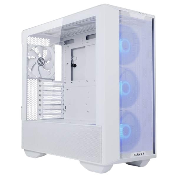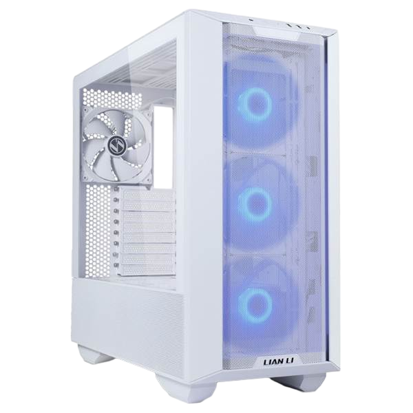 La caja Lian Li Lancool III es una caja de torre media que viene en dos colores: negro y blanco. La versión blanca presenta un recubrimiento de polvo blanco minimalista. Incorpora el panel de vidrio templado que te permite lucir los componentes internos.