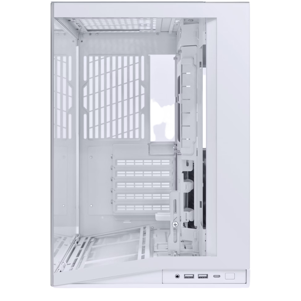 Destaca por su capacidad de refrigeración sobresaliente, e incluye filtros antipolvo extraíbles y la opción de montaje vertical u horizontal de la GPU con soportes incorporados, asegurando que se mantengan firmes y protegidas con el paso del tiempo. El panel frontal ofrece una conectividad moderna con 2 puertos USB 3.0, 1 USB 3.2 Tipo-C y un conector de audio HD de 3,5 mm, además de un módulo I/O reposicionable que puede situarse en la parte superior o inferior. Disponible en color blanco y en versión Flow, que añade 5 ventiladores PWM de aspas invertidas preinstalados.