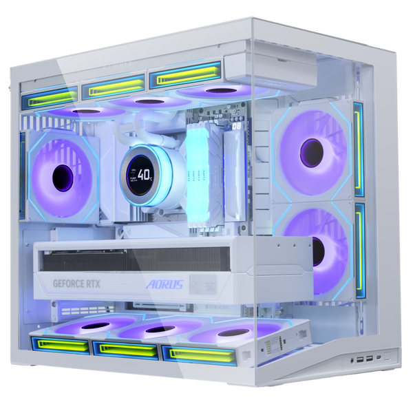 Con un acabado blanco elegante y un panel lateral de vidrio templado, esta caja permite mostrar los componentes internos con estilo. Su diseño limpio y moderno se adapta a cualquier entorno, desde oficinas hasta setups de gaming.