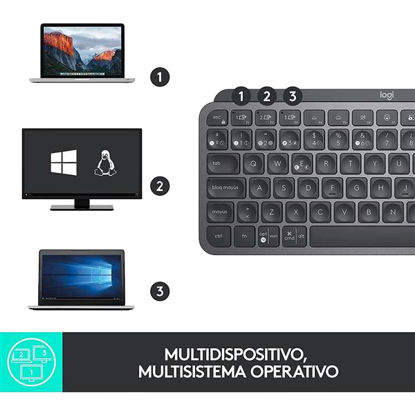 El teclado Logitech MX keys Mini for Business es un teclado con diseño minimalista de alta calidad. En formato pequeño y compacto con teclas de emojis, para dictado y uso del micrófono ahora es más inteligente. incorpora una retroiluminación inteligente con sensores de proximidad que detectan tus manos sobre el . Además la intensidad de la iluminación del teclado es de intensidad ajustable automáticamente si lo deseas. El teclado es inalámbrico con sistema de carga rápida a través de un cable USB-C. Su autonomía es de 10 días con la retroluminación activa o hasta 5 meses sin retroiluminación. Es un teclado Bluetooth por lo que podrás emparejarlo con cualquier dispositivo aunque también podrás emparejarlo con un receptor Logitech LogiBolt no incluido. Incorpora utilidades de actualización de firmware masivo para administracionres de IT.