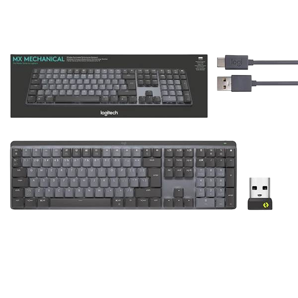 El teclado mecánico MX Mechanical con retroiluminación de alto rendimiento es un teclado inalámbrico con interruptores mecánicos de bajo perfil que ofrece una mejor sensación de escritura. Es un teclado multidispositivo y multi sistema operativo. tiene conectividad inalámbrica con hasta 10 meses de autonomia o 15 días con retroiluminación activa. incorporar sistema de carga rápida y cable con conexión USB-C para la carga y repector USB Logi Bolt incluido.