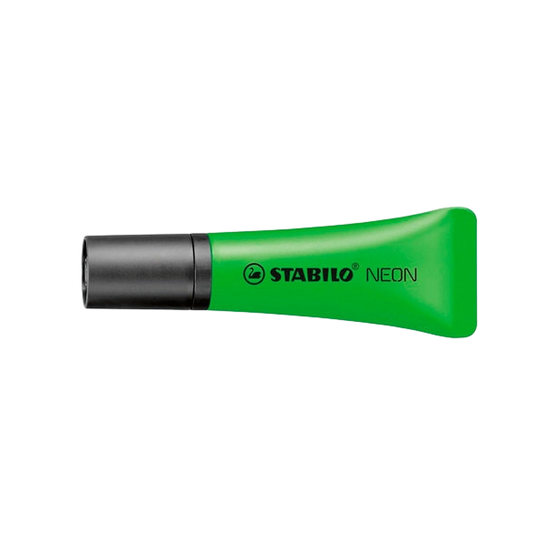 Stabilo Neon color verde es el marcador fluorescente con diseño minimalista de tubo y superficie blanda para una comoda sujección. Tecnología Antisecado STABILO: 4 horas de protección sin tapón de cierre. 2 anchos de línea 2 + 5mm. Tinta con base al agua.
