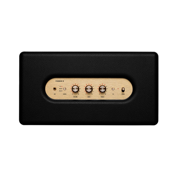Los detalles clásicos de Marshall, como el acabado en vinil texturizado, el frente jaspeado y el logotipo emblemático, adornan la estructura robusta de madera del modelo Stanmore II. La parte frontal del altavoz incluye una placa de latón grabada con la fecha de fundación de la marca, 1962: un guiño al legado de la marca y a sus más de 50 años ofreciendo volumen.