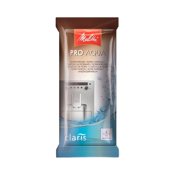 El uso de cartuchos reemplazables de agua Melitta Pro Aqua permite establecer el nivel de dureza del agua en 1 y reduce los depositos de cal prolongando la vida de tu cafetera.