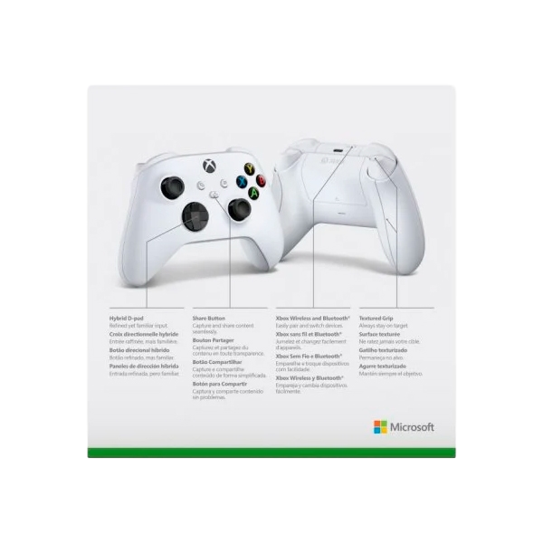 Microsoft Xbox Wireless Controller White. Tipo de dispositivo: Gamepad, Plataformas de juego soportadas: Xbox Series S,Xbox Series X,Xbox One,Xbox One S,Xbox One X, Tecnología de control para juegos: Analógico/Digital. Tecnología de conectividad: Inalámbrico y alámbrico, Interfaz del dispositivo: Bluetooth/USB, Interfaz de receptor inalámbrico: USB. Color del producto: Blanco. Fuente de energía: Batería. Sistema operativo Windows soportado: Windows 10, Sistemas operativos móviles soportados: Android