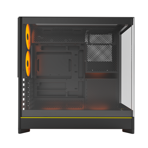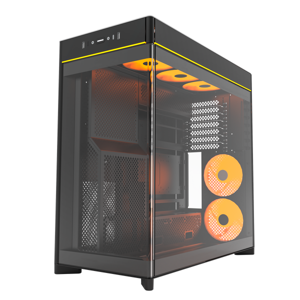 La Montech HS02 PRO está diseñada para soportar sistemas de refrigeración avanzados, incluyendo múltiples ventiladores y radiadores. Dispone de varias bahías para unidades de almacenamiento, permitiendo la instalación de discos duros y SSDs para satisfacer las necesidades de almacenamiento de cualquier usuario.