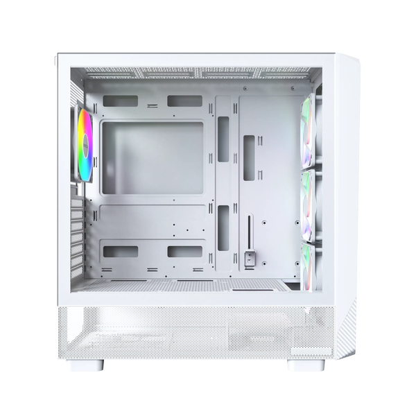 La Montech X5 ARGB es una caja de ordenador diseñada para entusiastas del hardware que buscan una combinación de estilo y rendimiento. Su diseño en color blanco y el panel lateral de cristal templado ofrecen una estética moderna y elegante.