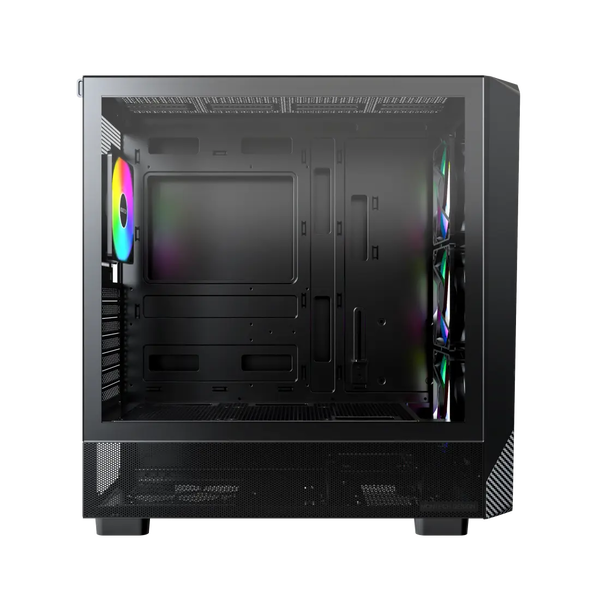 La Montech X5 ARGB está diseñada para ofrecer un rendimiento superior con soporte para tarjetas gráficas de gran tamaño y múltiples unidades de almacenamiento. Su estructura robusta y bien ventilada asegura que los componentes se mantengan frescos incluso durante largas sesiones de uso intensivo.