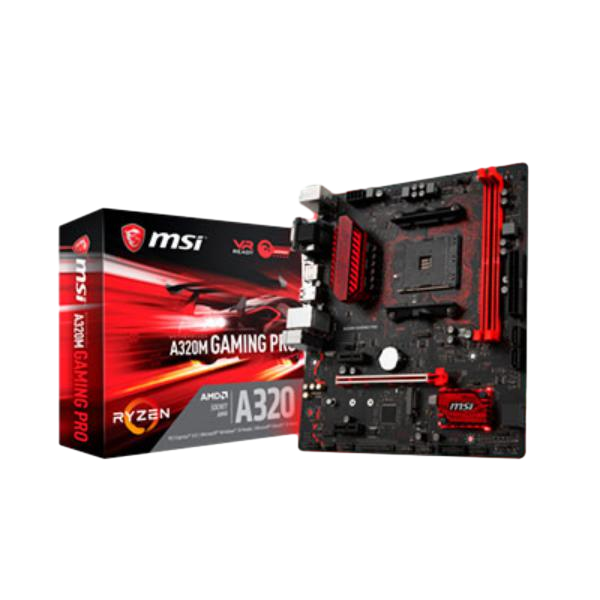 La placa base para juegos A320M GAMING PRO es compatible con los procesadores serie AMD® RYZEN para zócalo AM4, memoria DDR4-2667MHz, memoria DDR4 y VR Ready para brindar la mejor experiencia de juego de realidad virtual sin latencia