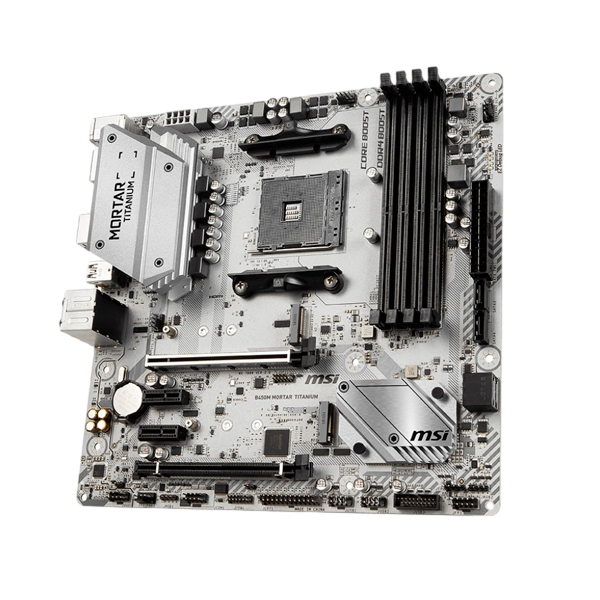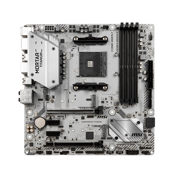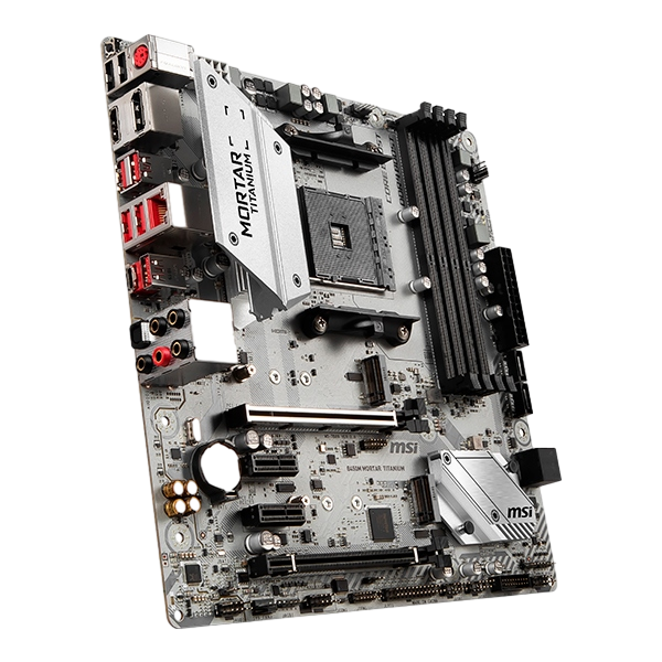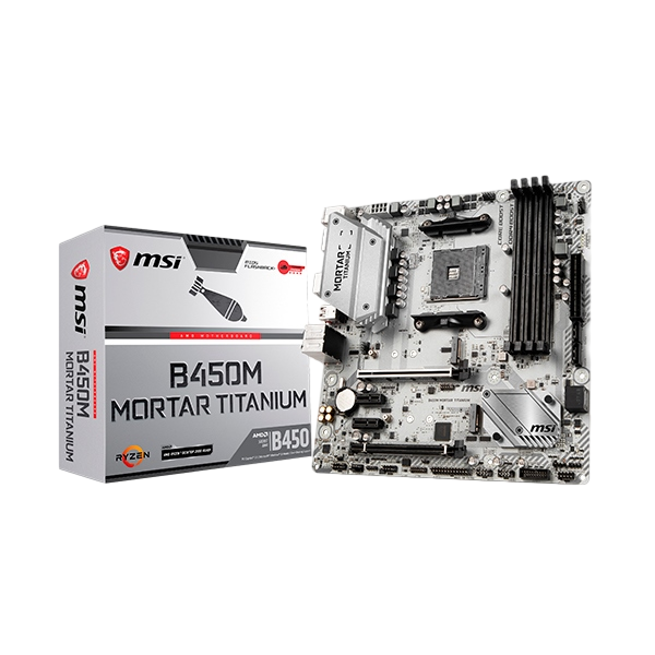 Al igual que la B450M Mortar , La placa base B450M Mortar Titanium soporta los procesadores AMD Ryzen 2 y cuenta con 4 bancos de memoria RAM que soportan hasta 64GB. Cuenta además con 2 puertos M.2 y 2 puertos USB 3.1. ¡La diferencia está en su llamativo color plateado!