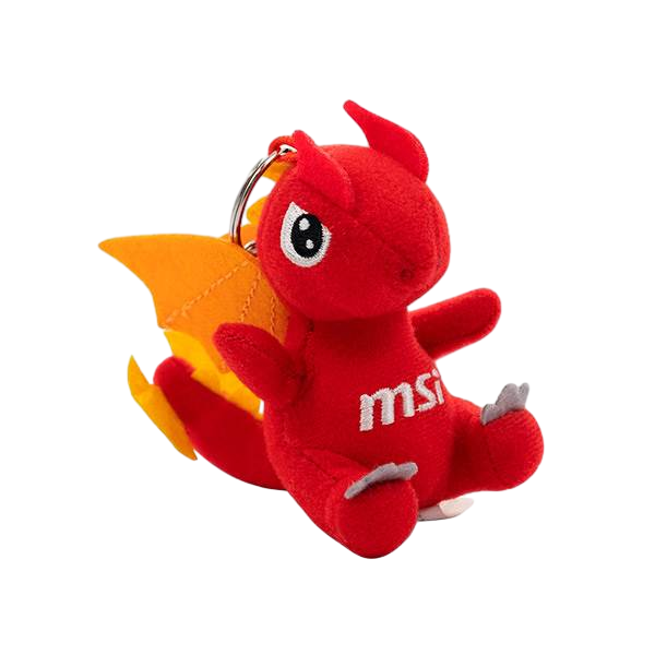 Llavero MSI Lucky Doll Charm. El llavero MSI Lucky viene con un lindo diseño en 3D que representa el estilo de juego de MSI. Una idea de regalo perfecta., Fabricado en material 100% fibra de poliester con el diseño de la mascota de dragón MSI Lucky. Tamaño 110x150x150mm. Peso 60 gramos.