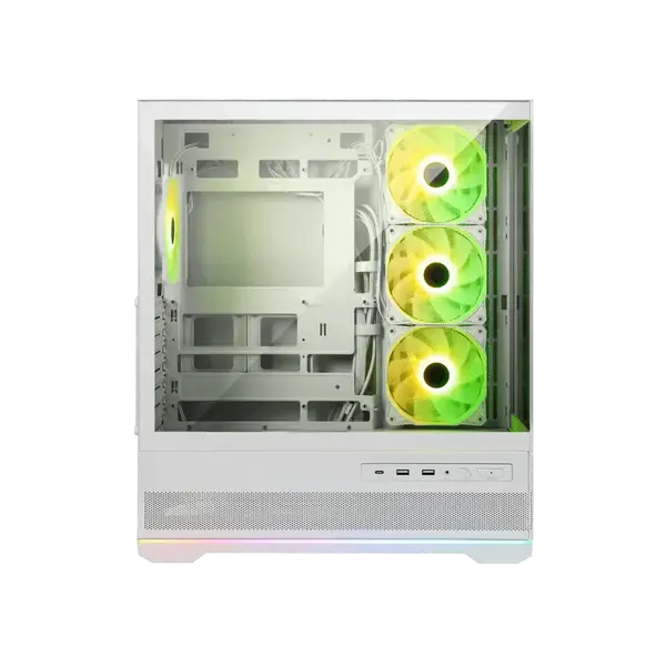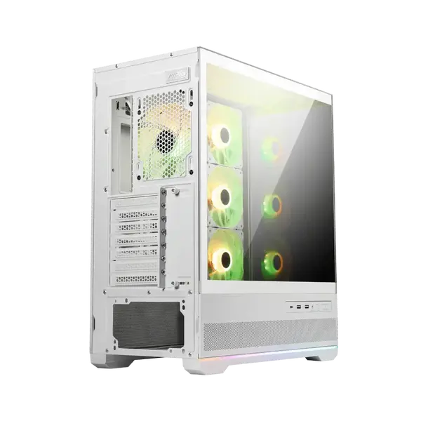 La MSI MAG PANO 100R PZ ARGB White es una caja ATX Mid-Tower diseñada para usuarios que buscan alto rendimiento de refrigeración y un diseño moderno y elegante con paneles de vidrio templado blanco. Los ventiladores ARGB preinstalados en el lateral y trasero permiten mostrar los componentes internos con iluminación personalizable, creando un setup visualmente impactante y limpio. Es ideal para configuraciones gaming o estaciones de trabajo donde estilo y funcionalidad se combinan. En refrigeración, la caja incluye de serie 3 ventiladores ARGB laterales y 1 ventilador trasero ARGB, con soporte adicional para ventiladores superiores de hasta 3x 120 mm o 2x 140 mm. El diseño optimiza el flujo de aire, mientras que la compatibilidad con radiadores de hasta 360 mm en la parte superior y 120 mm en la trasera permite configuraciones de refrigeración líquida avanzadas, manteniendo los componentes a temperaturas ideales incluso bajo cargas intensas.