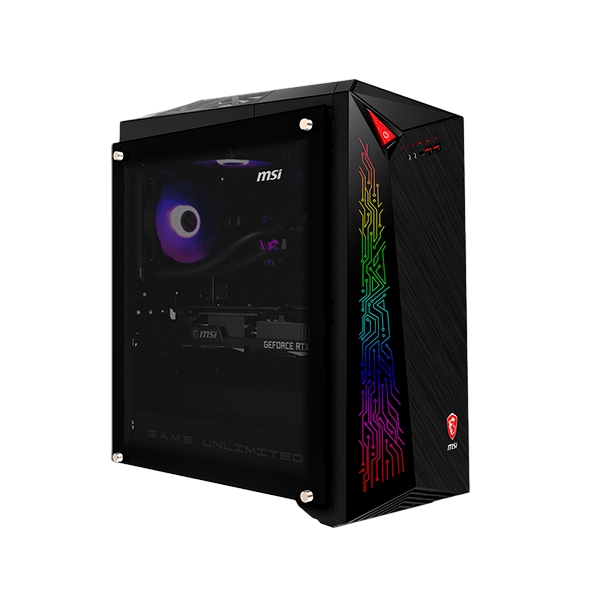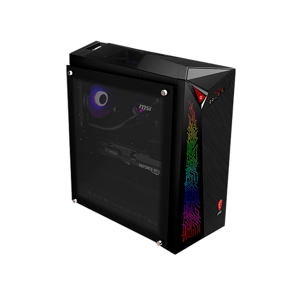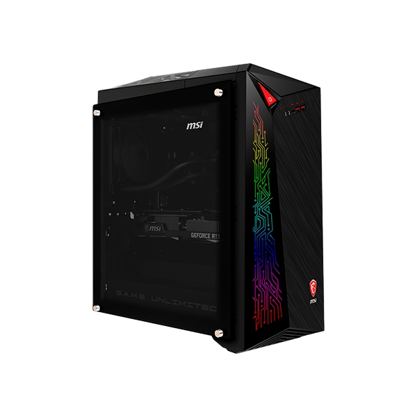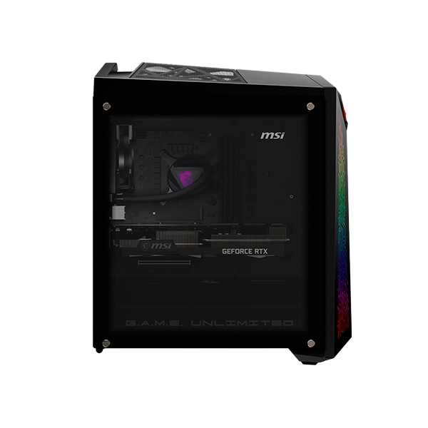 La computadora de escritorio para juegos MSI está construida con tarjetas gráficas de enfriamiento de ventilador MSI, las tarjetas gráficas de la serie GeForce RTX ™ 20. Además de que el rendimiento es hasta un 40% mejor que el de la serie GeForce GTX 10, las tarjetas de la serie MSI GeForce RTX ™ 20 también tienen una eficiencia de enfriamiento mejorada, con un diseño de doble ventilador y rodamientos de bolas dobles para garantizar un rendimiento duradero.