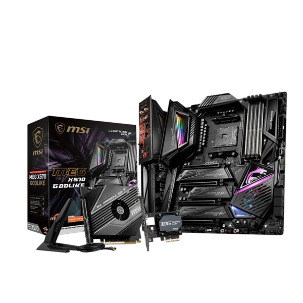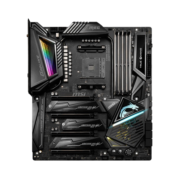 La placa base MSI MEG X570 Godlike es la joya de la corona del fabricante, y está pensada para quienes quieren lo mejor a toda costa. Esta placa en formato E-ATX es compatible con procesadores Ryzen de 2ª y 3ª generación. Tiene unas especificaciones de lo más completas: Soporta hasta 128GB de ram DDR4 a 4800+ MHz, hasta ryzen 9, cuenta con 6 puertos SATA, 4 conectores PCI-e 4.0 x16, 3 ranuras M.2, 11 USB 3.2, salida de audio óptica S/PDIF, y doble tarjeta de red, incluyendo 1 x Killer E2600 GBLAN y 1 x Killer E3000 2.5GBLAN. Es compatible tanto con SLI como con Crossfire.