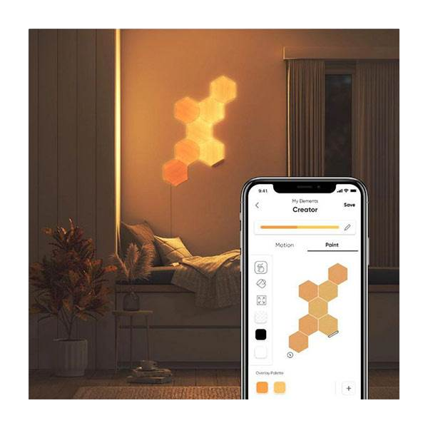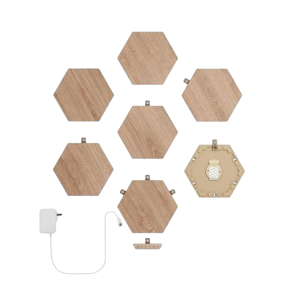 El Nanoleaf Elements Hexagons Starter Kit es un conjunto de 7 paneles LED hexagonales diseñados para crear una experiencia de iluminación personalizada y única en tu hogar u oficina. Cada panel LED hexagonal está diseñado para imitar la apariencia de la naturaleza y está equipado con la tecnología de luz inteligente de Nanoleaf.