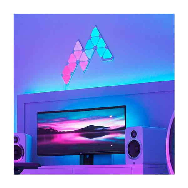 El Nanoleaf Shapes mini triangles Starter Kit es un conjunto de paneles LED mini triángulos diseñados para crear una experiencia de iluminación personalizada y única en tu hogar u oficina. Cada panel LED mini triángulo es táctil y te permite cambiar fácilmente el color y la intensidad de la luz con solo tocarlo o desde su aplicación.