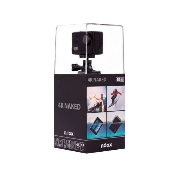 Experimenta tus emociones sin límites con la nueva cámara de acciónNilox 4K NAKED. La primera cámara de acción impermeable Nilox sin carcasa de hasta 10 metros de profundidad. Con la funda protectora suministrada, también es posible bucear hasta 30 metros. Práctica y versátil, es ideal para todas las actividades al aire libre. De hecho, puede usarse sin una funda protectora tanto para deportes acuáticos como para deportes de invierno, como esquís y tablas de snowboard. La pantalla táctil de 2 pulgadas también le permite ajustar todas las configuraciones de manera rápida y fácil.