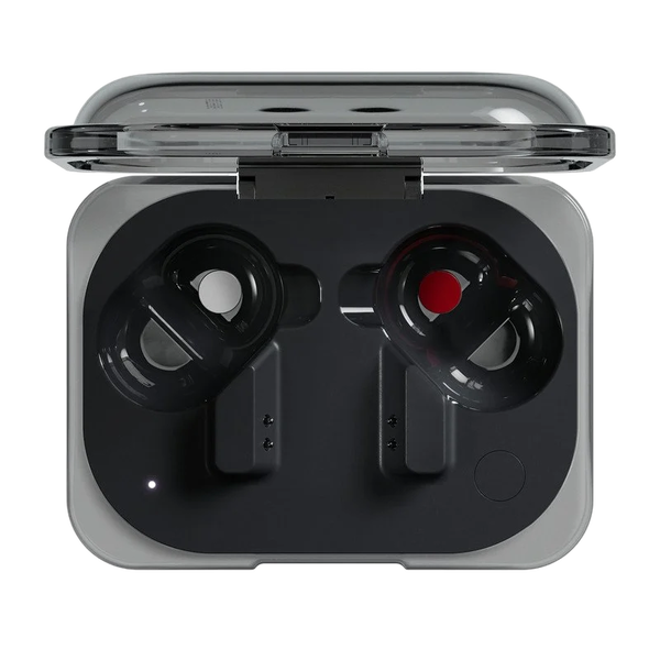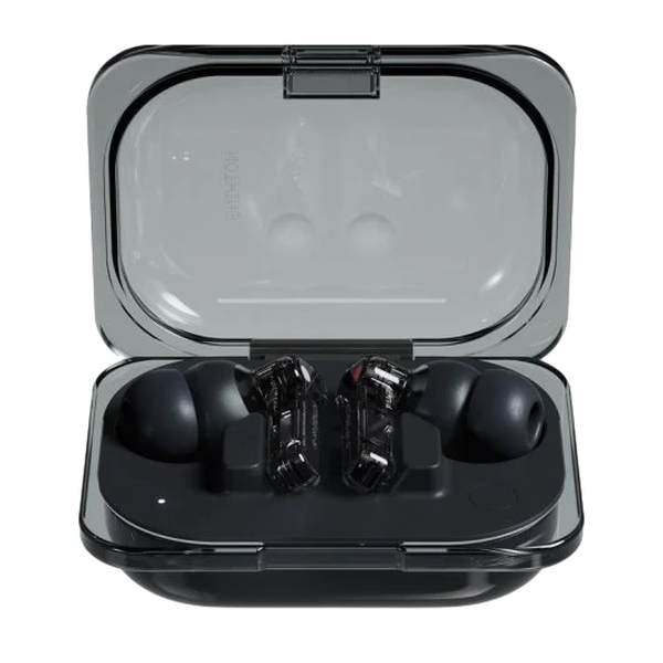 Los Nothing Ear (a) Black combinan un diseño ligero, moderno y funcional en color negro con un acabado translúcido característico que deja ver los componentes internos, ofreciendo un estilo único y tecnológico. Cada auricular pesa apenas 4,8 g, lo que permite un uso cómodo durante horas sin molestias. El estuche compacto, de líneas limpias y bordes suaves, se adapta perfectamente a la mano y facilita su transporte diario.