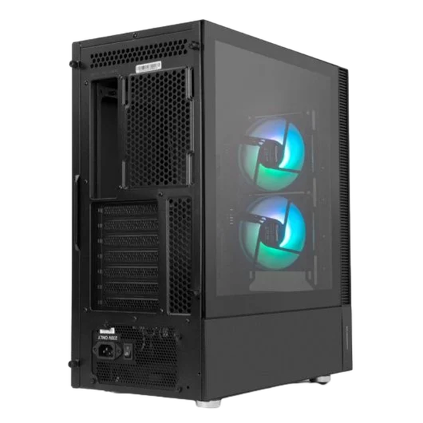 La caja PC ofrece un diseño moderno y elegante con lateral y frontal de cristal templado, permitiendo una vista completa del interior del equipo. La iluminación ARGB con ventiladores y tiras LED proporciona efectos visuales personalizables, mientras que la controladora integrada permite gestionar hasta 6 ventiladores para un equilibrio perfecto entre estética y rendimiento. Con USB 3.0 de alta velocidad y conectividad completa, es una opción ideal tanto para setups gaming como para estaciones de trabajo avanzadas. Compatible con placas base ATX y Micro-ATX, esta caja admite tarjetas gráficas de hasta 350 mm y disipadores de CPU de hasta 166 mm, ofreciendo suficiente espacio para componentes de gran tamaño. La estructura interna flexible permite instalar hasta 8 ventiladores, optimizando el flujo de aire y asegurando un sistema estable y eficiente durante largas sesiones de uso. La disposición de bahías internas incluye múltiples combinaciones de 3.5" y 2.5" para discos y SSD, brindando gran capacidad de almacenamiento y organización.