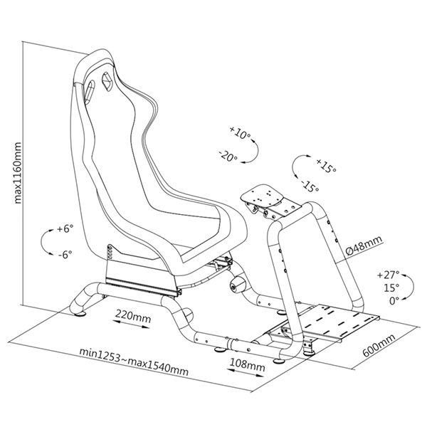 • Soporte de volante de altura ajustable ± 30 ° e inclinación ajustable ± 30 °