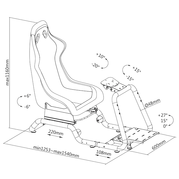 Obtenga la mejor experiencia de juego con un asiento de cubo de fibra de vidrio y un chasis de acero rígido totalmente expandible