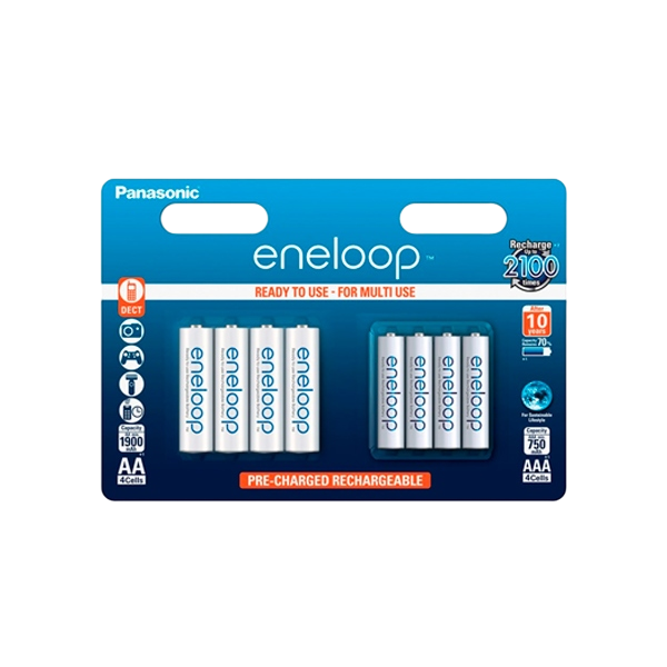 Panasonic Eneloop x4 AA 1900mAh + x4 AAA 750mAh – Pilas