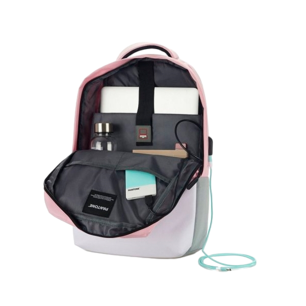 Mochila Pantone Rosa basada el sistema de identificación de color de la empresa Pantone. Dispone de un bolsillo acolchado específico para transportar un ordenador portátil de hasta 15,6". Fabricada en Poliester. Cable USB con conector para conectar tu dispositivo o batería de forma cómoda desde el exterior. Tejido acolchado con multiples bolsillos.