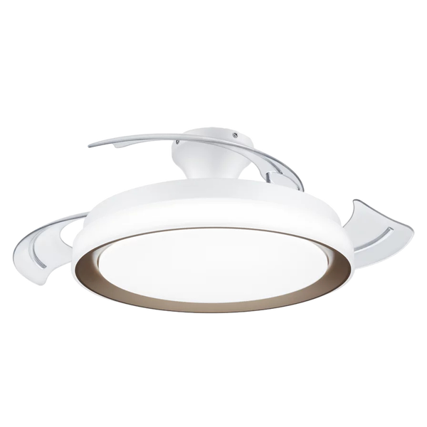 El ventilador de techo PHILIPS Bliss con acabado dorado ofrece una fusión perfecta entre tecnología avanzada y diseño refinado. Este modelo está equipado con un sistema de aspas retráctiles que permanecen ocultas cuando el ventilador no está en funcionamiento, otorgando una apariencia minimalista similar a una lámpara de techo moderna. Al activarse, las aspas transparentes se despliegan suavemente para generar un flujo de aire potente y constante, adecuado para estancias medianas de hasta 25 m². El acabado dorado no solo añade un toque lujoso al entorno, sino que también armoniza con decoraciones clásicas, contemporáneas o glamorosas. Esta solución 2 en 1 —ventilación e iluminación— permite optimizar espacio sin renunciar a la estética.